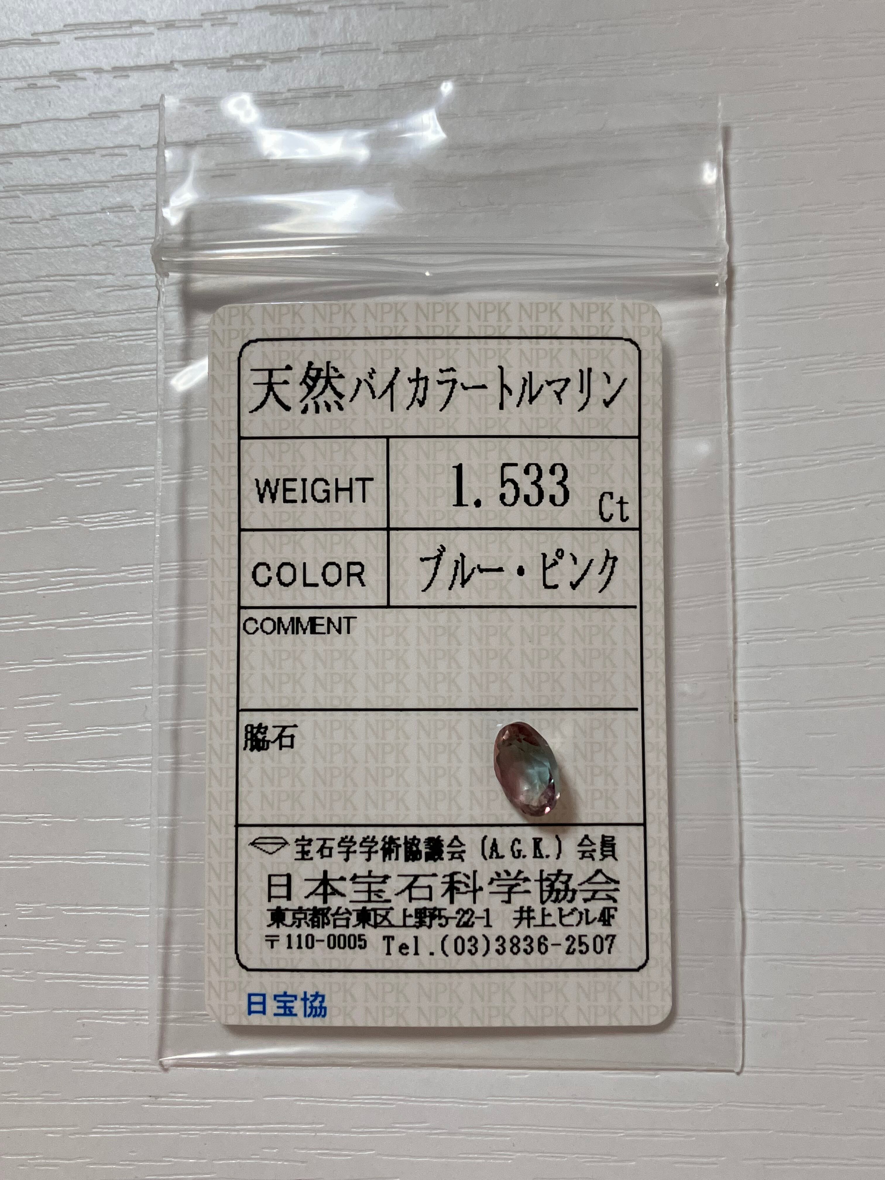 A057 ソーティング付き 天然バイカラートルマリン1.533ct オーバル