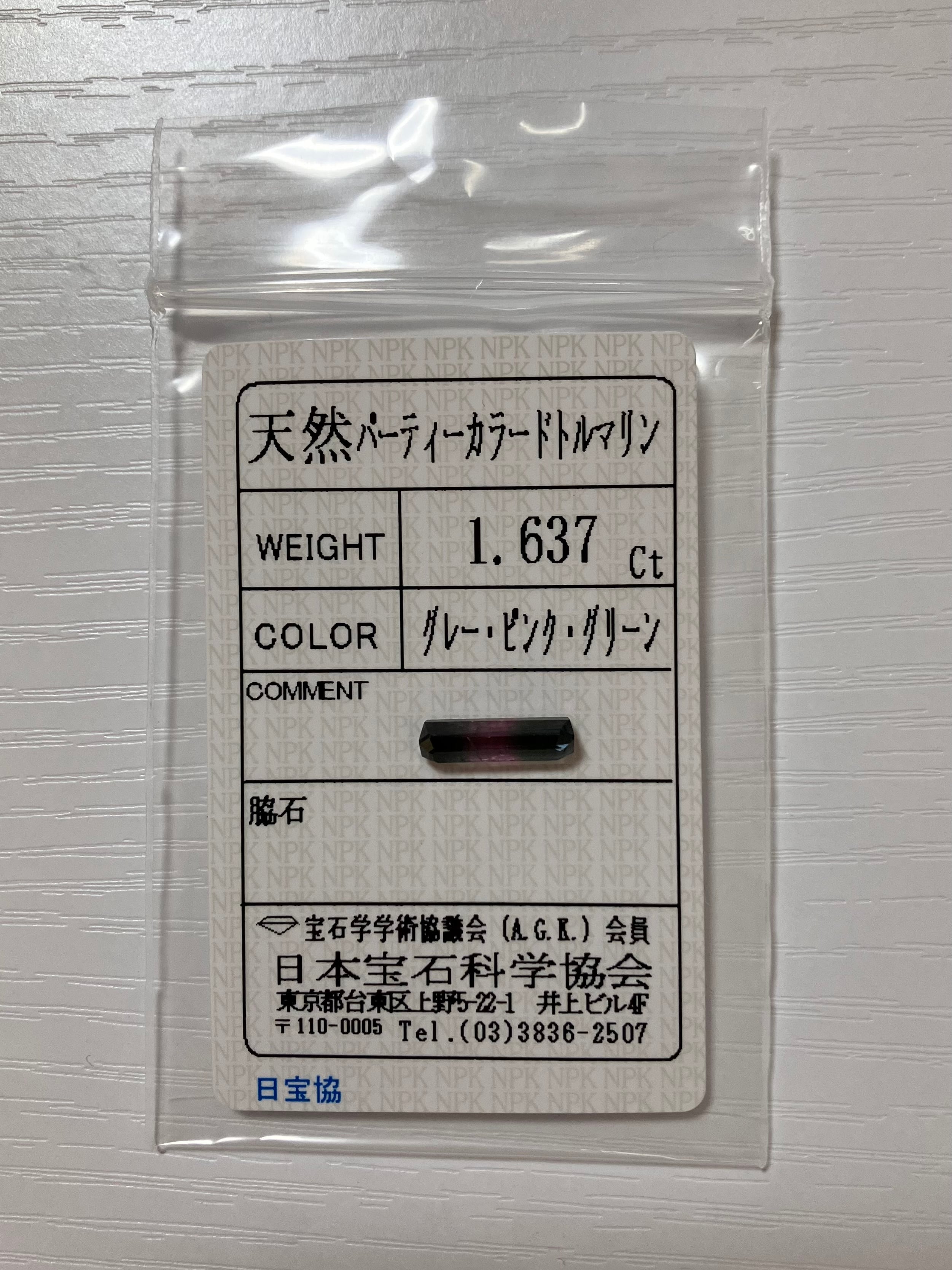 A064 ソーティング付き 天然パーティカラードトルマリン 1.637ct