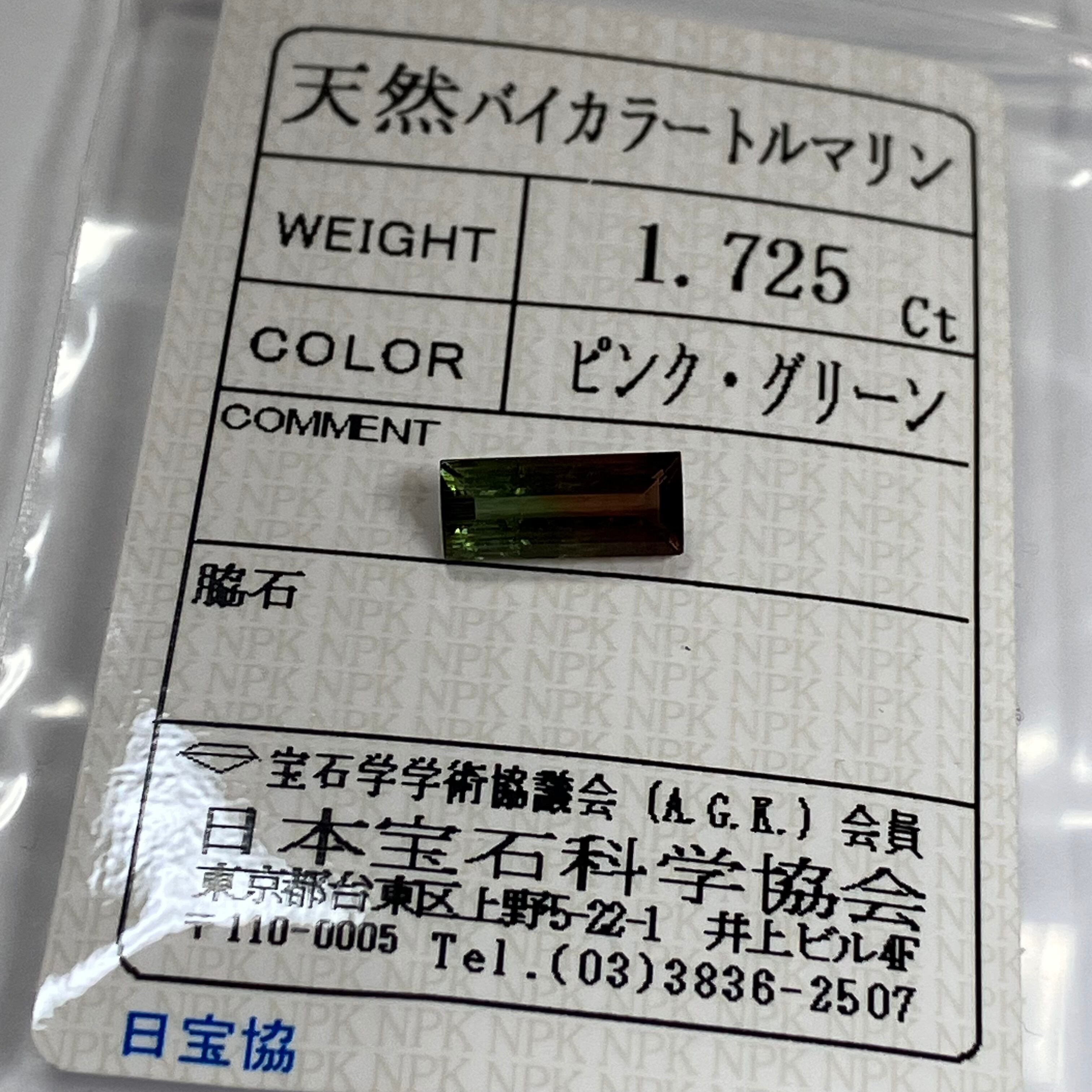 A168 ソーティング付き天然バイカラートルマリン 1.725ct