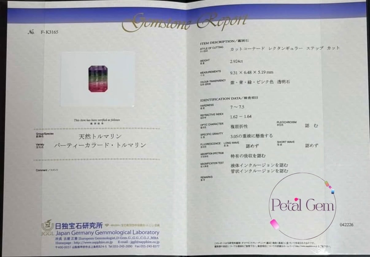 A555 【価格固定ルース】鑑別書付き 天然パーティカラードトルマリン 2.924ct